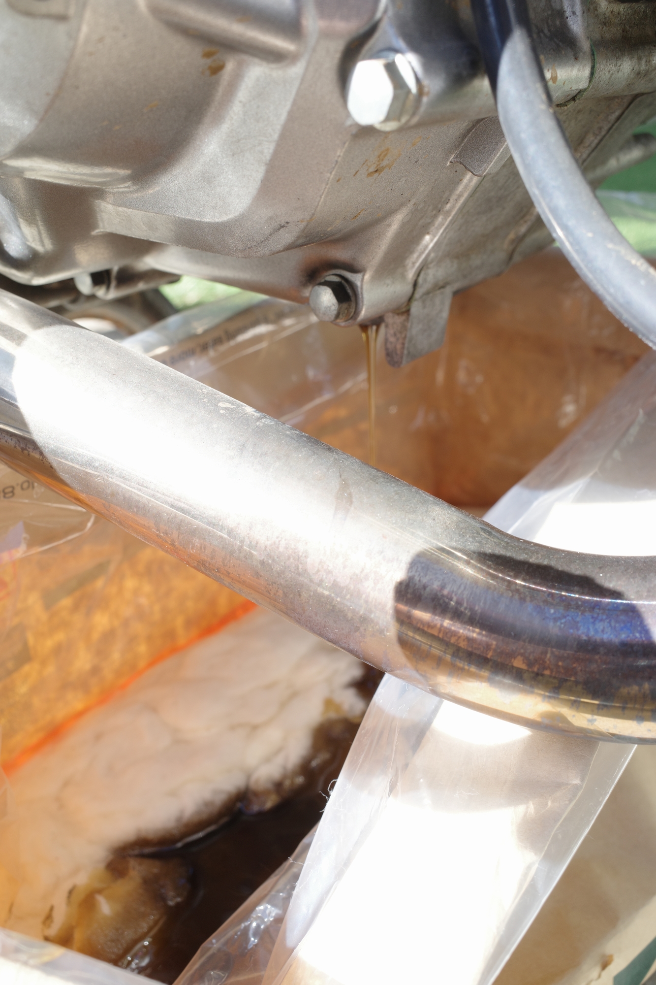オイルは、前回の交換からほとんど走っていないので綺麗。ただ、酸化による劣化を恐れ年に一度の交換を続けてる。1Lのオイルを買い、400mlを余らせている件も含めてもったいない・・・