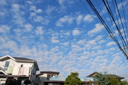 この写真は昨日撮ったもの。綺麗な空に見えますか?私には素晴らしく汚い空に見えます。日本の空って電線邪魔ですよね。電線あってもいいから、電柱をもっとモダンなものにして欲しいなぁ。画になるように。