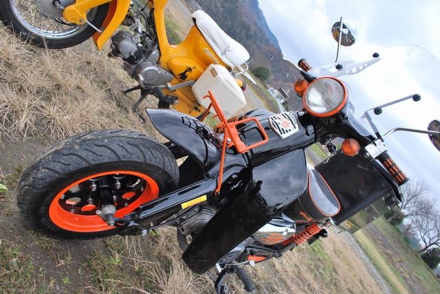 なんていうか、時代の先駆者ボニさまのカブキチさん。カブ乗り始めてから、ずっと見てきたカブさん。けど、変更点はサイドボックスとリアサスのみだったと思う(笑)