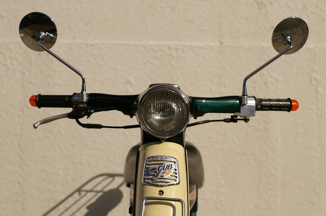 他にやりたいカスタムがあったのですが、一番目に見えて楽しめるカスタムで安価だったので今回はこれを実施。ハンドルを4cmほど純正位置から下げて、スムージング加工。そして、ウィンカーをバーエンド化。見た感じはカワイイのですが冬用グローブをして乗ると、グローブが若干ウィンカーを覆ってる感じも。気をつけて乗らないとね。もっとモペッドっぽくカスタムしたいなぁ!