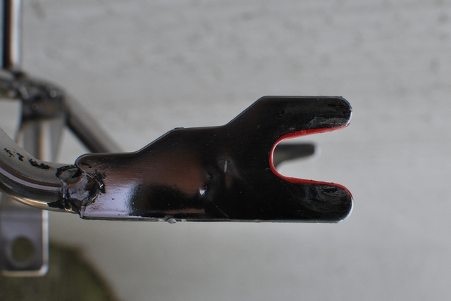 ここは必要がないのですが、一応コダワリのため加工。バリ取りと角取り。手元にヤスリがなかったので、完成には至っていませんが少しは車体に傷つけないように配慮した形になってます。