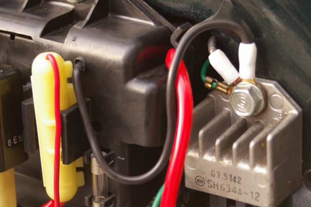 まず、先週末にやったアーシング。エンジンヘッドからレギュレータへアース線を一本。このレギュレータから更に、バッテリーのマイナス端子へのアース線を一本増設しました。配線は後日もう少し綺麗にまとめたいと思います。あとイグニッションコイルとか、ACジェネレータカバーからのアースも増設したい。効果云々じゃなくて、やることが楽しいから!(笑)