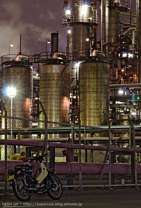 せっかくオイル変えたので、と言う事で夜は川崎の工場地帯までツーリングに行ってきました。ふむ、我がカブながら格好良い(* ´ω` *)