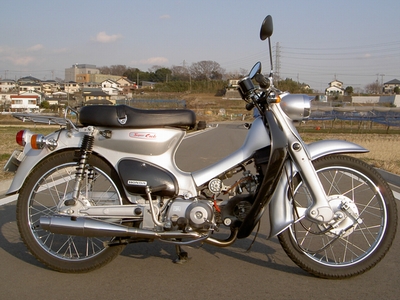 どうも、下のが北島カブロウType-ESです。ESは ExteriorSports の頭文字です。「C100をスポーティーにカスタムしたら」ということを重点においてカスタムしました。…で、↓こちら。