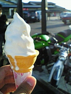 くみちょさん、ジャーキーは抹茶ソフト。私はバニラソフトを。
