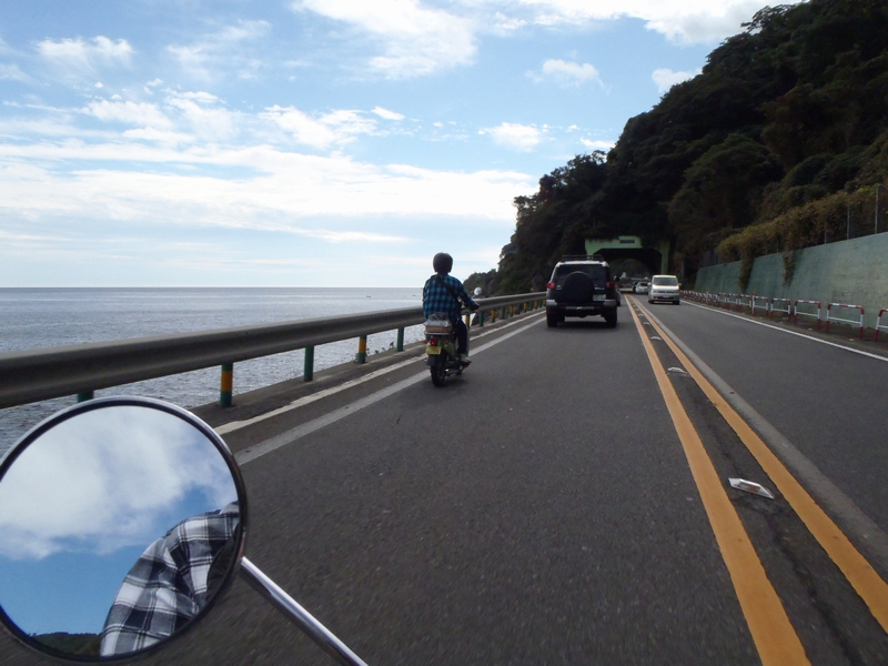 東伊豆の海岸沿いをサクサクッと走って、道の駅伊東マリンタウンで休憩したり赤沢温泉で足湯に入ってまったりしたり。かなり満喫しながら南下。