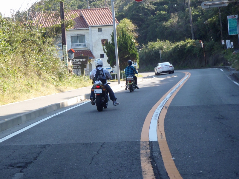 天候不順により、集合2時間押しでの出発。伊豆半島に入る頃には気持ちよいほどの快晴に。