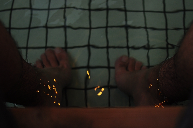 松崎町で、海で遊んで冷え切ったお二方の足を暖めるために足湯・・・って、もう乾いてるんですか?!(僕も海で遊べばよかったなー