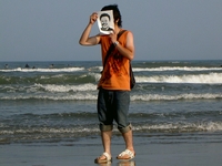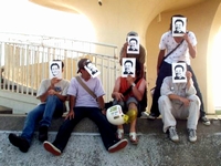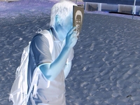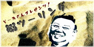 カメラを構えた瞬間、全員お面装備。若干ひきつりながら笑う女性。そりゃ、海岸でこんな集合写真撮ってたら変人集団ですな(笑)