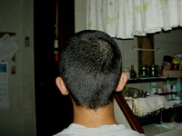 まず、反省の意を込めて頭を丸めました。
