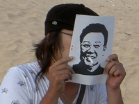 そーたさんはこの紙を大量に印刷してきてくださいました。ナイス・ネタです!!上の写真の〝タバコを吸う金○日〟は傑作だと思います。