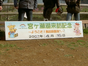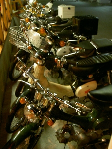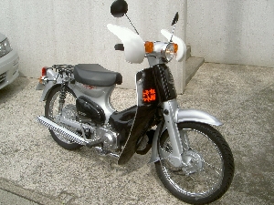 …で観光地にありがちな看板で記念写真。残念ながら私がとった写真はボケてしまってました…うらむなら三脚を…いゃ、私でお願いします(笑) この後ヤビツに向かうことになったのですが、先に給油。予定していたガソリンスタンドが閉鎖していたのかなんなのかわかりませんが、七沢の方のガソリンスタンドに給油しに行きます。その後、わざわざ宮ヶ瀬まで戻ってからヤビツ攻略。何度も走ってるけど、やっぱりイヤだなぁ。両側から流れてくる陰気っていうのかなぁ?雰囲気が。とりあえず、頂上で激しい○○に襲われた某Yさん以外は無事に菜の花台へ。すでにカブ乗りの間では菜の花台は定番の地として定着しつつあります。1・大磯デニーズ、2・菜の花台!みたいな。菜の花台で少しお話をしてから捕鯨するため〝くじら〟さんへ移動。「ゲソ」、「チーズ」と食べたので今日はスタンダード(肉玉)を注文。…美味しかった。店先においてあるカブの集団を見てニヤニヤしながら、行きかう人の「あれ全部カブじゃない?」という言葉を聴いて更にニヤニヤ。白いPカブが来なくて良かったです。完全にニヤケ顔が犯罪者でした。顔だけで逮捕される自信があります。