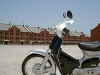 この後、大桟橋へ行きすぐに赤レンガ倉庫へ。駐車場前に立っていた誘導員の人に原付停める場所を聞くと、