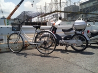 ススムさんはススカブではなく、ススチャリ(仮)で駆けつけてくださいました(笑) 本当にありがとうございました。そして、文具店の場所を聞いた私にわざわざ先導してつれてってくださいました。本当に助かりました。その紹介してくださったお店のそばでススムさんとはお別れ。そのお店に欲しいものがあり、本当に感謝感謝です。店を出ると、今度はトモさんから連絡が。とりあえず、こんな場所にいてもわかりにくいだろうと思い山下公園に行きました。そこで1時間待機後、トモさん到着。