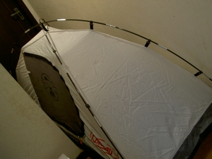 テンション上がって、無駄にマットを敷いて、シュラフも敷いて。
