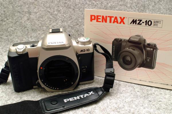 写真はネット上で検索したもので我が家のものではないのですが、同系同色機です。このMZ-10にSIGMAの望遠レンズと思われるレンズが2つ。確か、ボディとレンズは別で買ったと思う。純正レンズじゃない。…あ、私…こんな偉そうな口きいていますがカメラに関してはずぶの素人なので間違っていたら優しく教えてください。