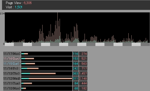 最近、アクセス数がやっと落ち着いてきた。11日に拉致されて、翌日のアクセスカウンタは1700以上だったもんなぁ。少しだけサーバーの心配したしなぁ(笑) そういう点では安心ですが、こうやって忘れられていくのだなぁと少し怖い思いもしております。これからは自分の戦いだぁ。かんばらなきゃ!