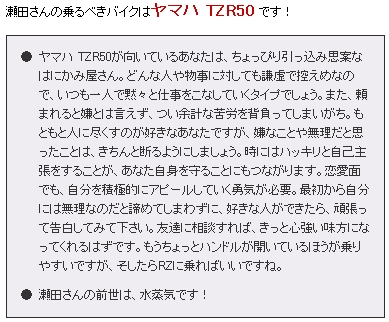 瀬田さんの乗るべきバイクは「ヤマハ TZR50」です!
