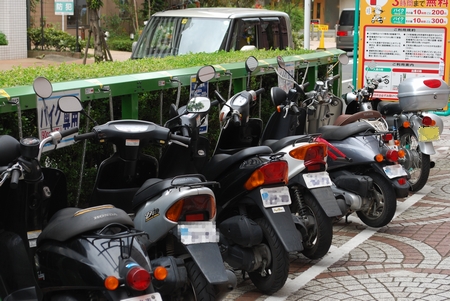 ・・・で、駐輪場に戻った時の一こまが上の写真。一番奥の原付だけやけにハンドルが低い(笑) 気づいた時に駅前だったのにも関わらず一人で笑ってしまいました。おかげで行き交う人の冷たい視線を浴びる事に。