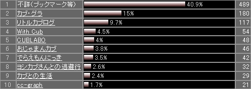 お気づきになりました?実質一位が「カブ・グラ」さんであることに!!(笑) 応援合戦なんて称して、お互いのサイトを心行くまで(?)応援していたわけですが、こんなに御アクセスいただいていたとは…C-1ダイナマイトってやっぱり侮ってはいけないと再確認しました。ありがとうございました。