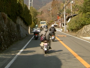 くみちょさんといたやさんはすぐにでも追い抜きたそうにしていました。結局、ヤビツ入り口の蓑毛までずっと前にいました。いたやさんは後に「どいてくれればよかったのに」と言ったとか言わなかったとか。バス以外にもジャイロが競って来たり、いろいろありましたが割愛。