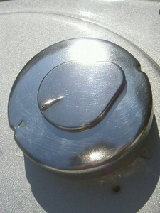 カブロウを洗車しました。今日はとても暑かったのでワックスはしませんでした。(暑いときにワックスするとすぐに乾いてしまい、よくないと聞いたので) その代わりに金属クリーナーのFLITZ(フリッツ)で至るところを磨きました。1時間分くらいの記憶がないのですが、気づけばタンクキャップ(写真参照)やリアアクスルシャフトについてるカラー、マフラー、リアショック、ウィンカースイッチ、ライトバイザーなどなど…いろんな場所がギラギラになってました。
