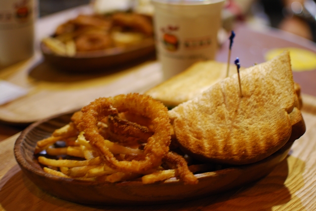 横浜の赤レンガ倉庫に集合して、そのまま赤レンガで夕食。サンドウィッチに見えますが一応ハンバーガーです。店舗の事情により、バーガー用のパンではなくサンドウィッチ用のパンでサンドしていますが(笑)