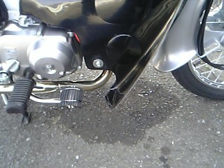 今日、駐輪場に戻った所カブの下にオイルが…オイル漏れだっ!Σ( ̄ロ ̄||||)