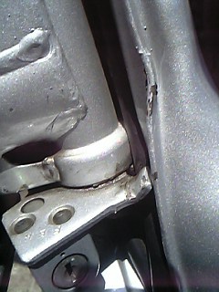 △事故直後のフロントフォークとフレームの干渉証拠画像。