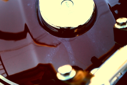 正直、少し前から気づいていたのですが・・・タンクキャップから油が流れた後がタンクに。前回の雨のときにタンクキャップ裏側に付着していたガソリンが流れ出たんじゃないかな?