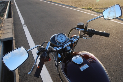 しかしながら、クオーターバイクのエルメスからすればちょうど良いのです。純正ハンドルに比べてグリップエンドは低い変わりに、手前にグリップが来るのでハンドルにダイレクトに力を入れられる感覚。絞り角もちょうど良く、ブレーキしたときにハンドルに逃げる自分の体重もうまく逃げているのか、とても止まりやすい。ちなみに、攻めやすくもなりました。