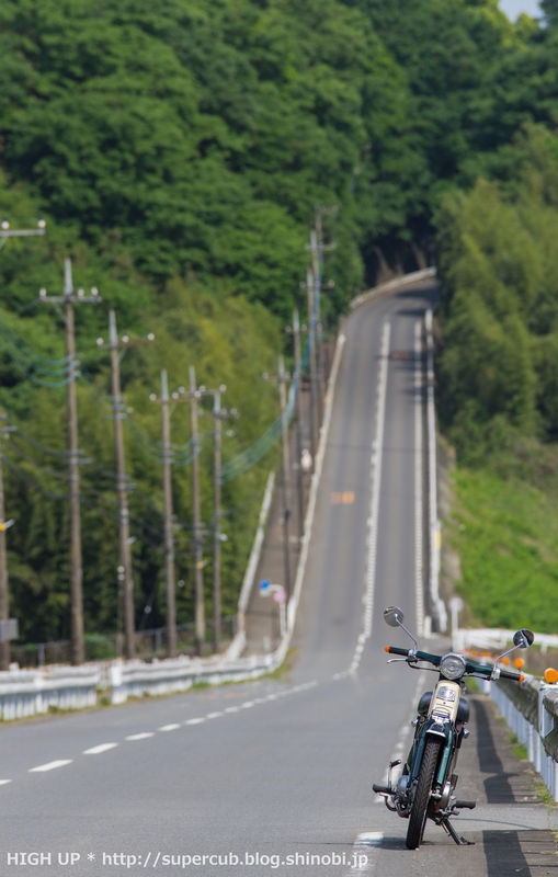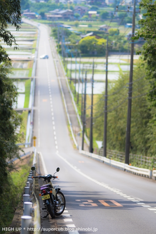 思っていた以上の急勾配に、カブも僕も「うおっ!!」って驚きましたが、田舎の雰囲気が漂う静かな田園地帯でした。交通量はそこそこあるので、写真を撮るなら混む時間帯は避けたいですね。