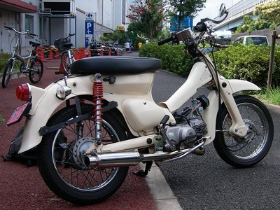 - 特徴 : バーハン、武川製リアサス(赤)、水本レーシング製スーパーミドルマフラー、JUN製BFヘッド80ccボアアップキット、東京堂・フレームカバー