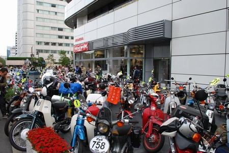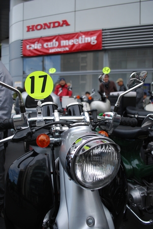 初めてカフェカブに来た時は、このR246面は3列だった気がしましたが気づけば4列になっていて、しかもギュウギュウ。ガソリン代高騰でカブもかなり人気でたってコトなのかな?それとも、やっぱり50周年だからなのかな??